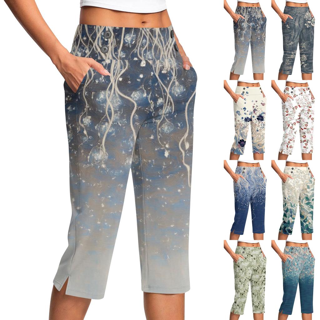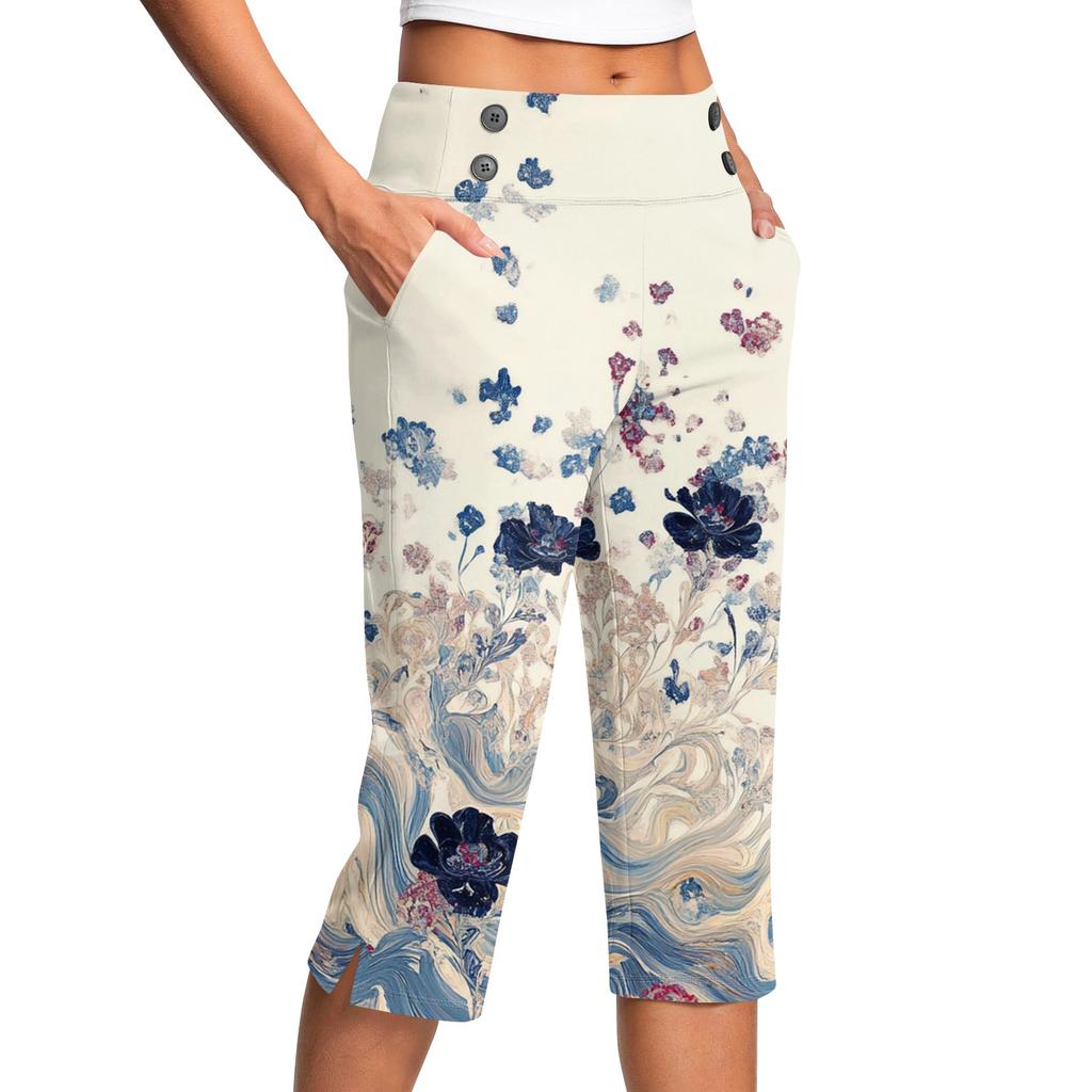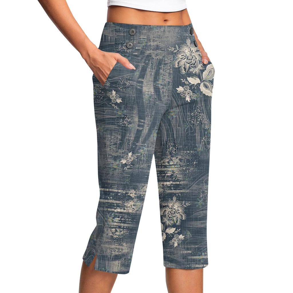 Женские винтажные брюки с цветочным принтом, на пуговицах, с карманами, с разрезом, с высокой талией, спортивные, для йоги, повседневные