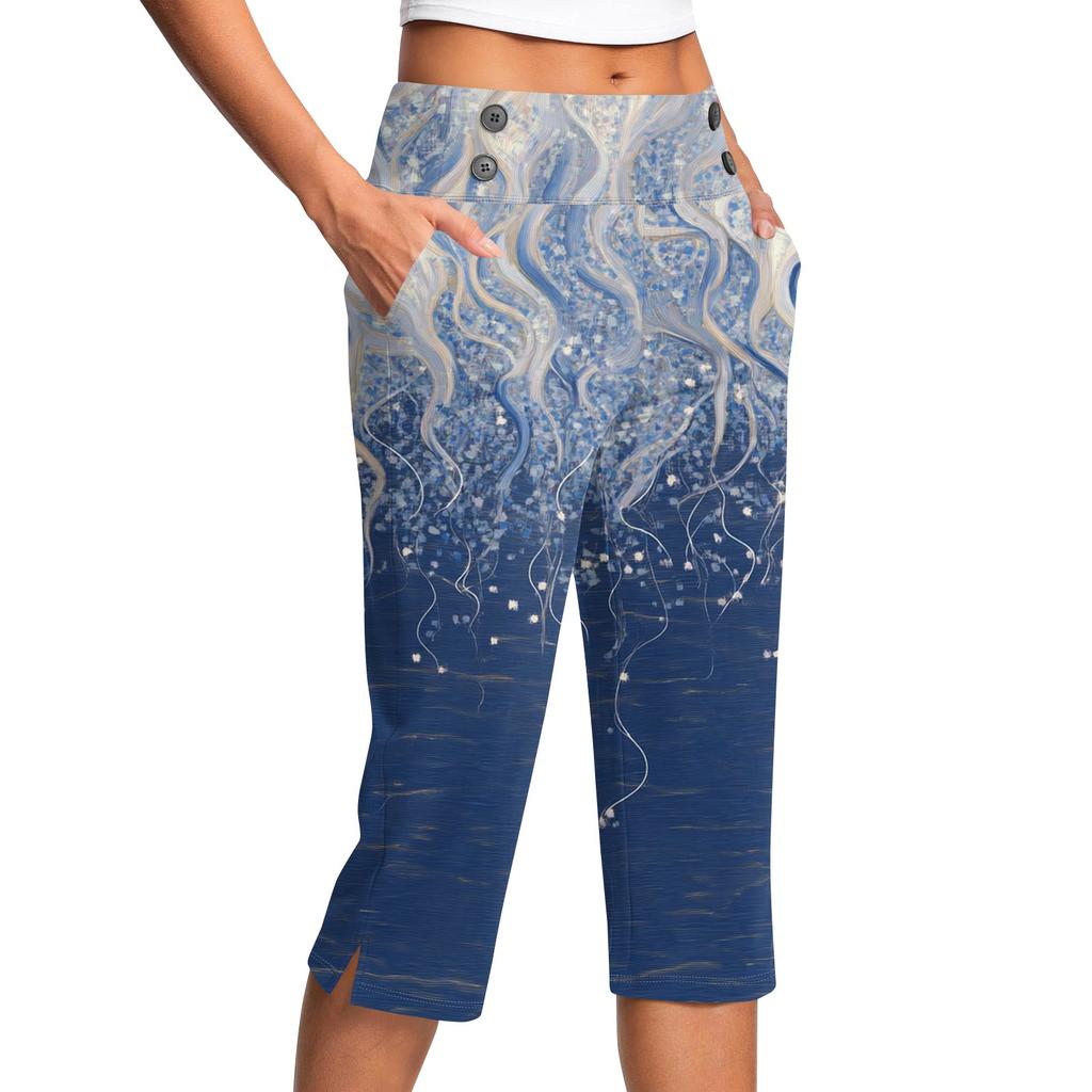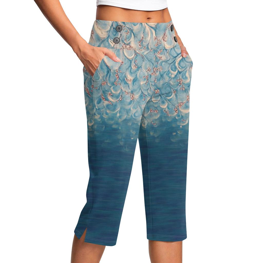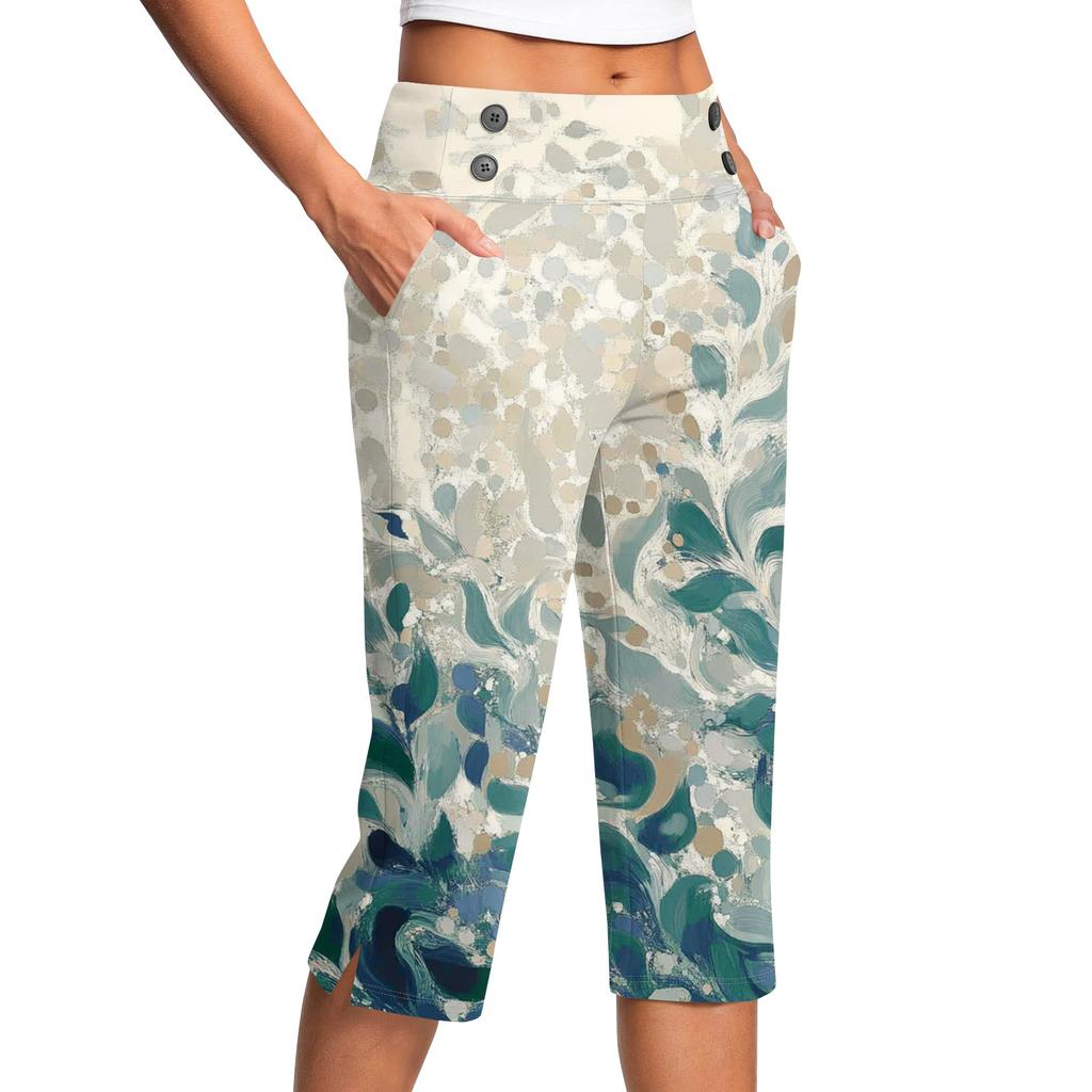 Женские винтажные брюки с цветочным принтом, на пуговицах, с карманами, с разрезом, с высокой талией, спортивные, для йоги, повседневные