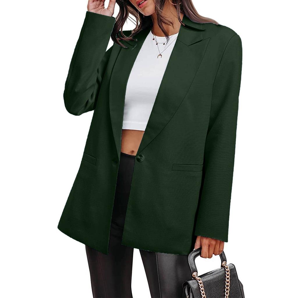 Женское повседневное рабочее пальто с длинным рукавом и V-образным вырезом на одной пуговице, однотонное