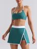 Комплект для йоги Nude Feeling Colorblock: Женский сексуальный спортивный бюстгальтер с открытой спиной и теннисная юбка