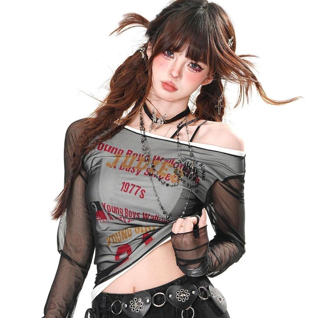 Девичьи футболки Y2K в стиле ретро-стритвир с длинным рукавом и вырезами для женщин