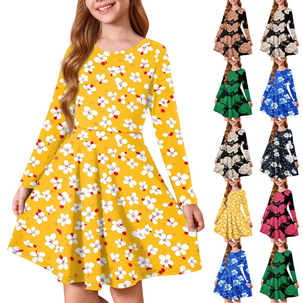 Летнее платье принцессы для девочек - платье-футболка А-силуэта с длинными рукавами