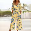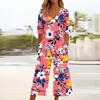 Женский свободный повседневный комбинезон с V-образным вырезом и принтом, облегающий комбинезон с широкими штанинами, комбинезон с широкими штанинами