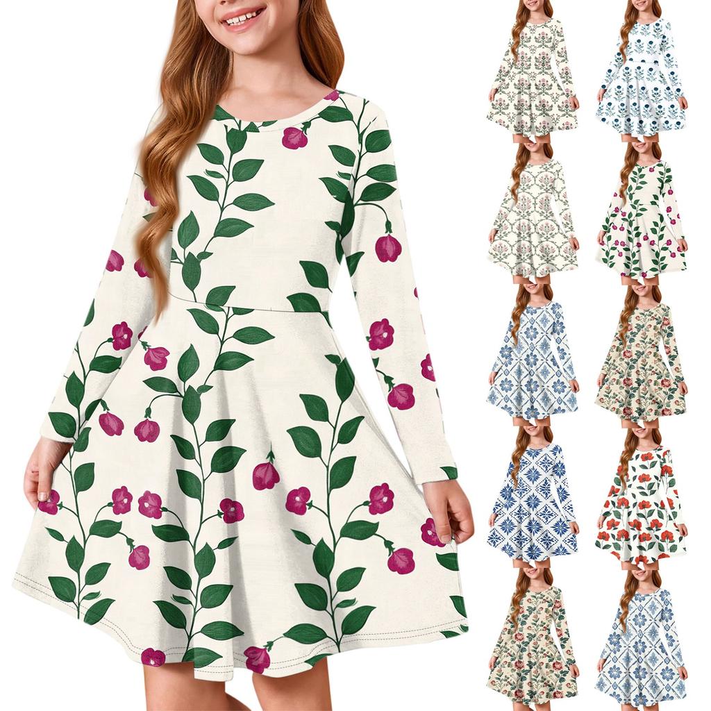 Летнее платье принцессы для девочек - платье-футболка А-силуэта с длинными рукавами