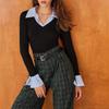Женская модная повседневная трикотажная рубашка с V-образным вырезом, длинными рукавами и эффектом двухслойности