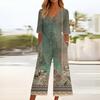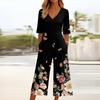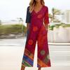 Женский свободный повседневный комбинезон с V-образным вырезом и принтом, облегающий комбинезон с широкими штанинами, комбинезон с широкими штанинами