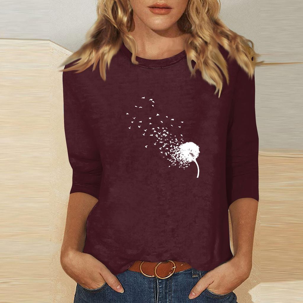 Женский топ с принтом и круглым вырезом, рукавом 3/4