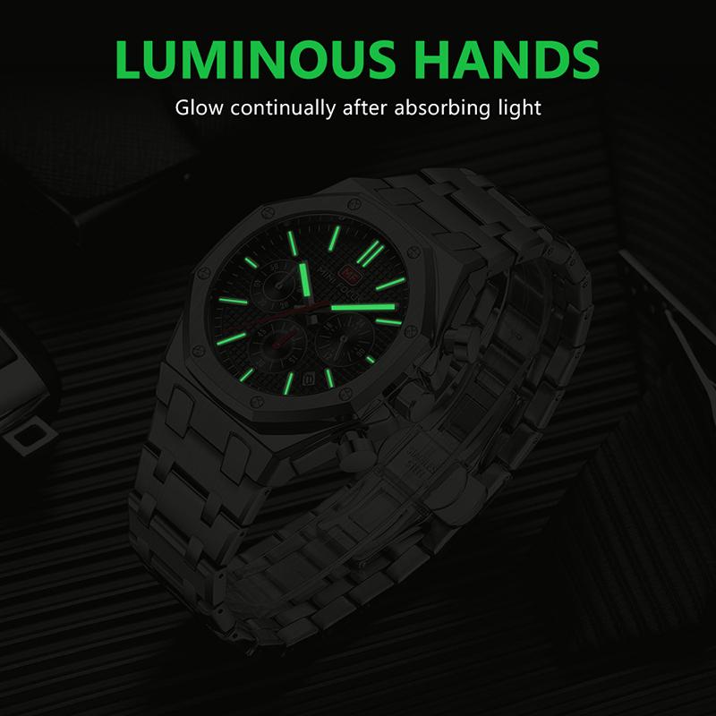 Мужские многофункциональные кварцевые часы в стиле business casual – Люминесцентные водонепроницаемые часы с браслетом из нержавеющей стали, подарок на День отца