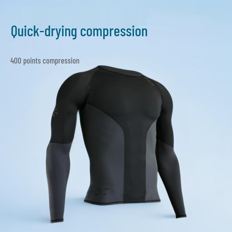 Мужская компрессионная футболка быстросохнущая: Базовый слой с длинным рукавом высокой эластичности для бега и тренировок