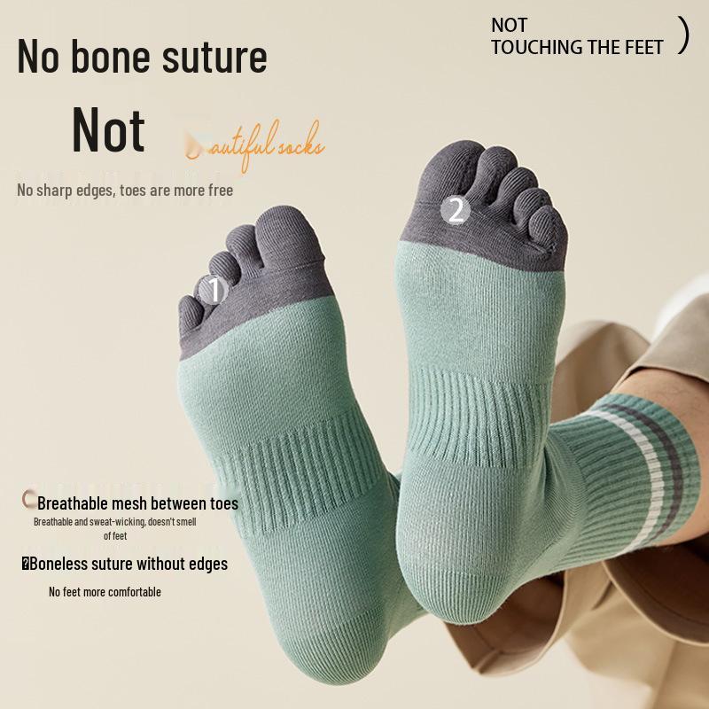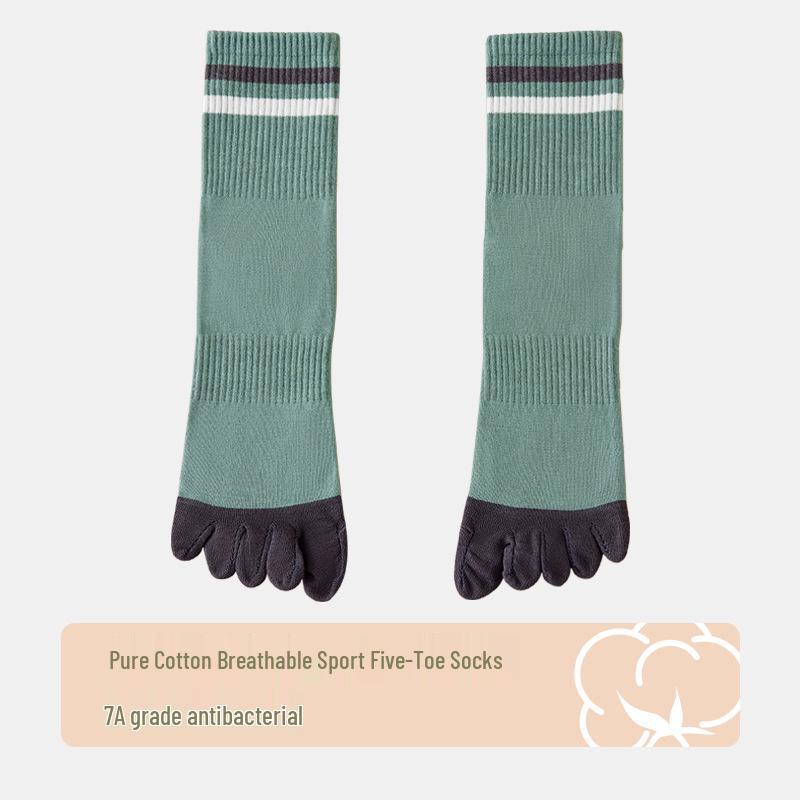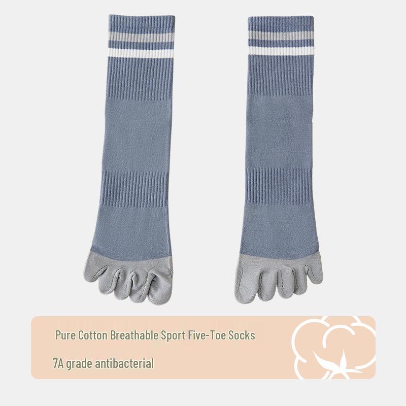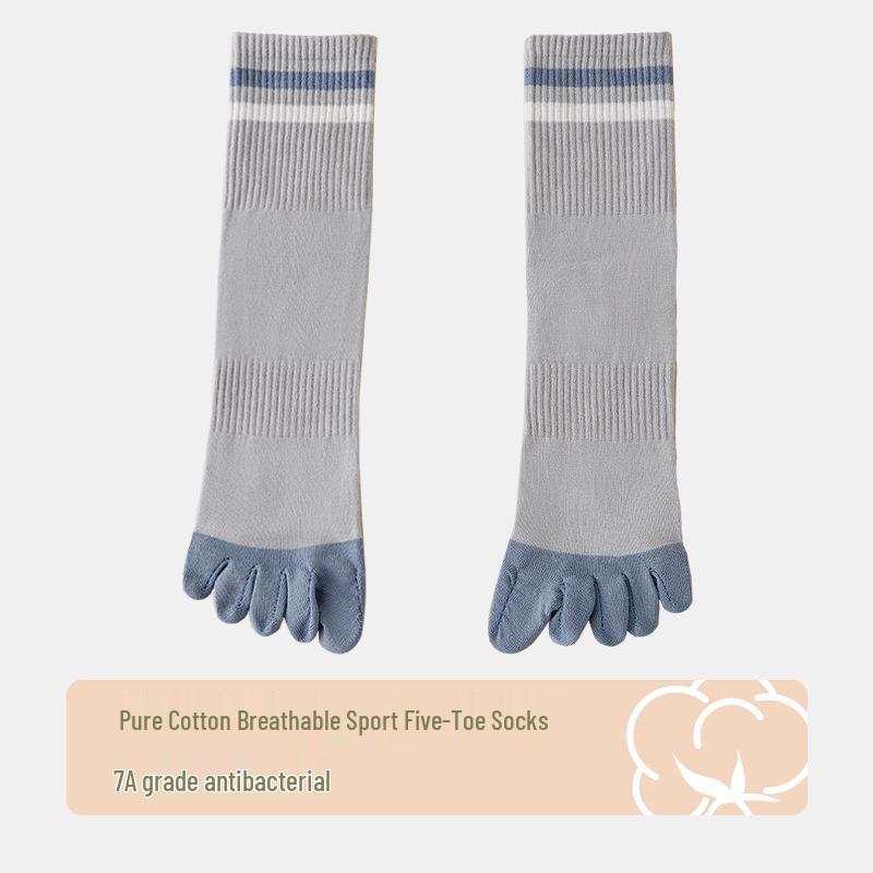 Мужские носки до середины икры из антибактериального хлопка с раздельным пальцем - Влагоотводящие, Устойчивые к запаху, Полосатые, Эластичные, Бесшовный дизайн для весны/лета