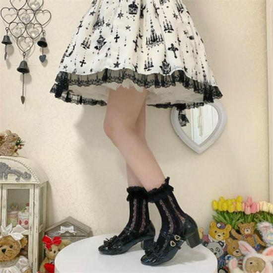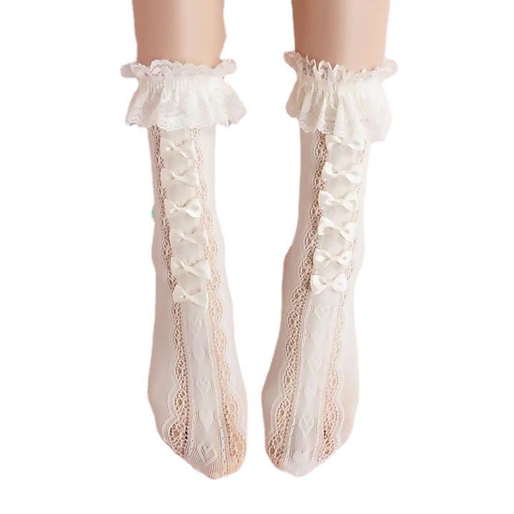 Белые кружевные гольфы до середины икры с бантом - стиль Лолита