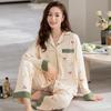 Женский комплект пижамы большого размера из хлопка - Кардиган с длинным рукавом, Двухпредметный, Идеально подходит для осени/весны