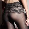 Mu Ruan Глянцевые черные колготки с кружевной отделкой - Супертонкие корректирующие колготки Аврора