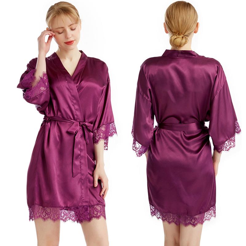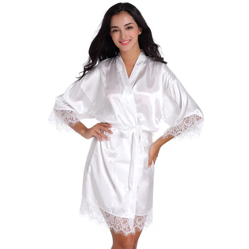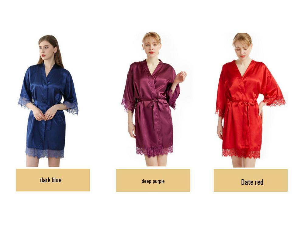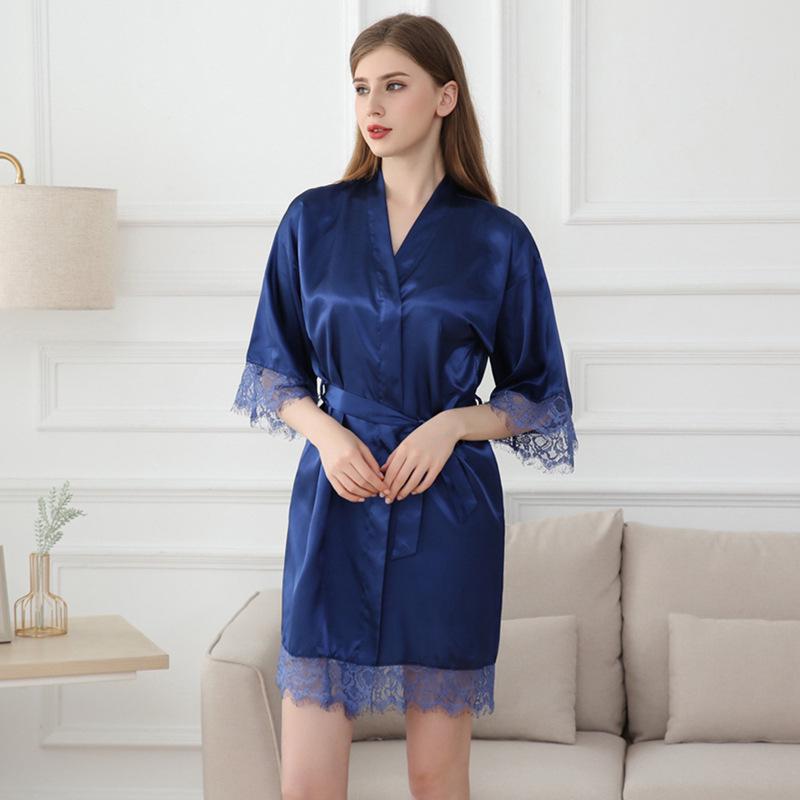 Женский летний шелковый халат с рукавом семь восьмых и кружевной отделкой