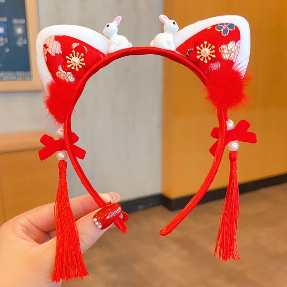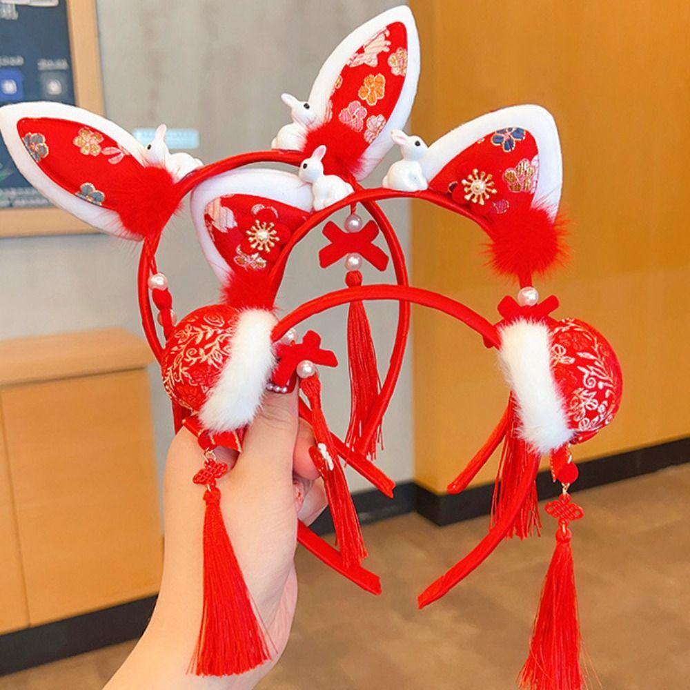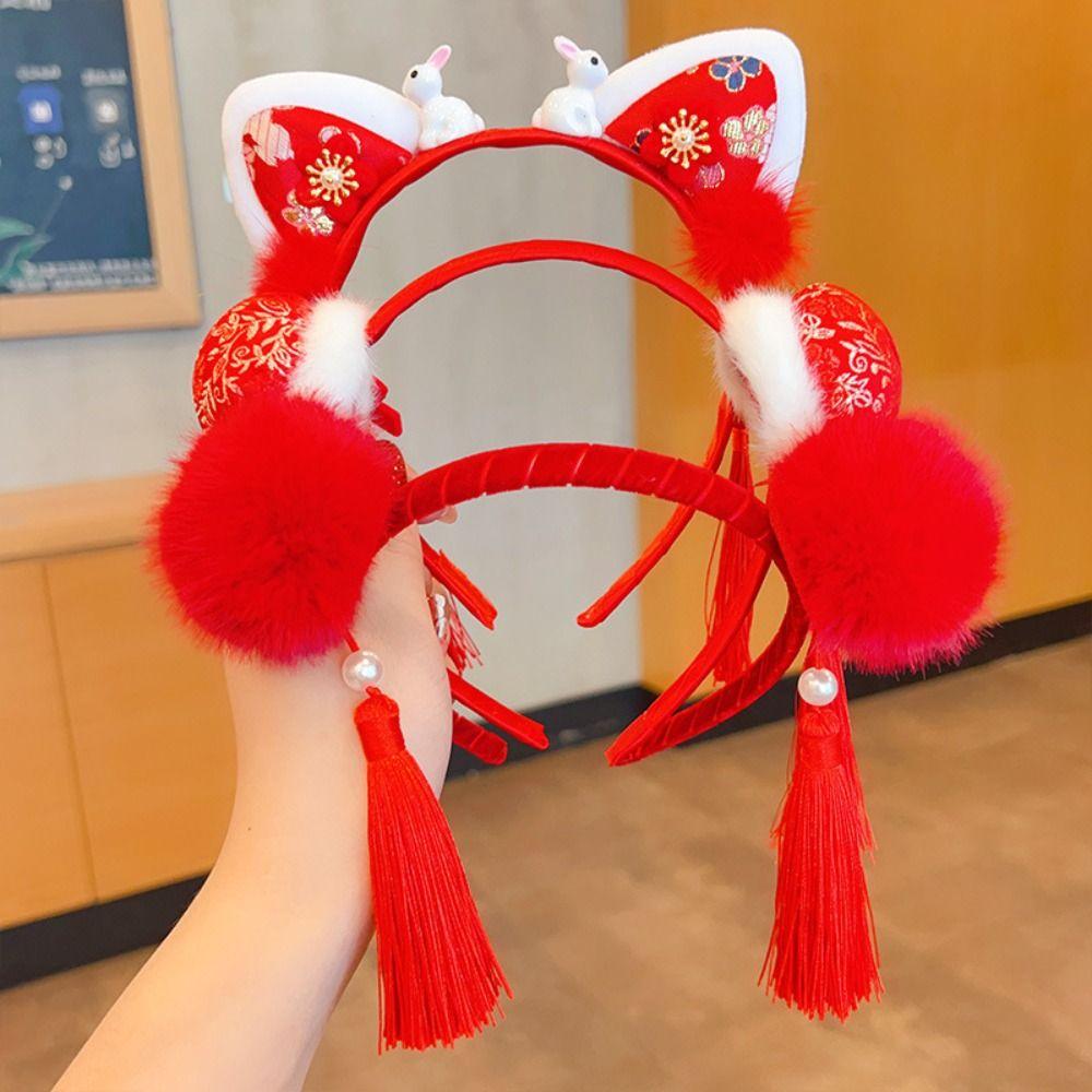 Headwear Hanfu Hair Accessories Tassel Red Bow Hairband All-match Chinese New Year Headwear Party