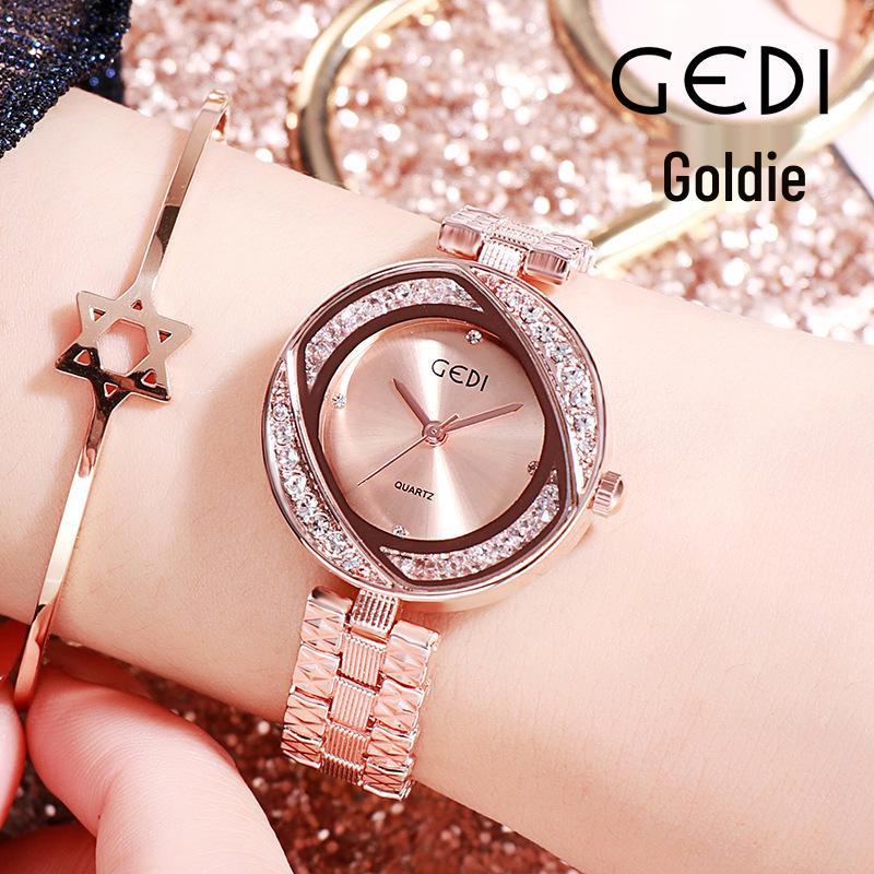 GEDI Ультратонкие женские водонепроницаемые кварцевые модные часы со стальным браслетом