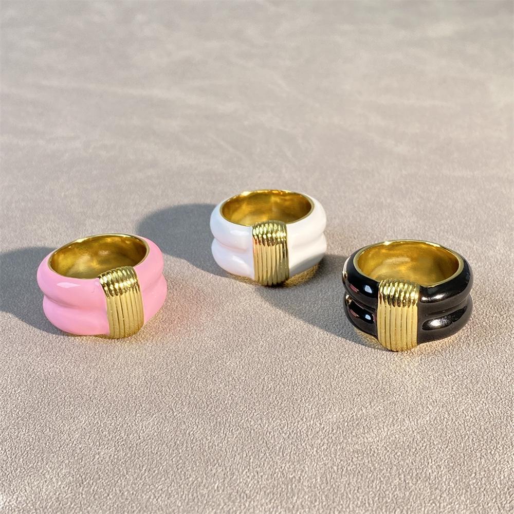 Женское кольцо из черной и золотой эмали: Французский нишевый дизайн, легкая роскошь, ретро-мода, высококлассный универсальный аксессуар