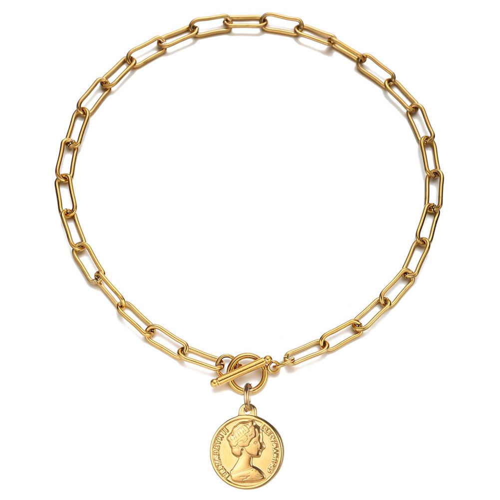 Минималистичное ожерелье-чокер из нержавеющей стали в виде скрепки с круглым кулоном Леди Свобода и застежкой OT — купить товар онлайн с бесплатной доставкой по всему миру!