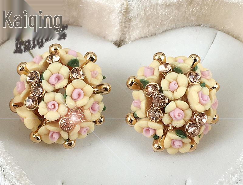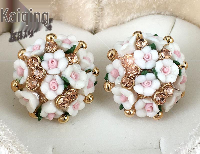 Керамические серьги-пусеты в виде розы в корейском стиле