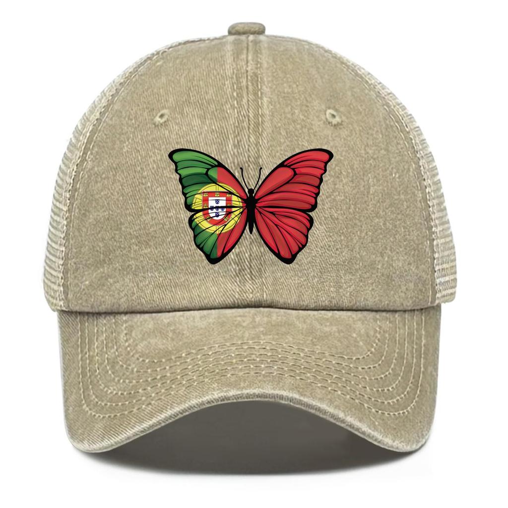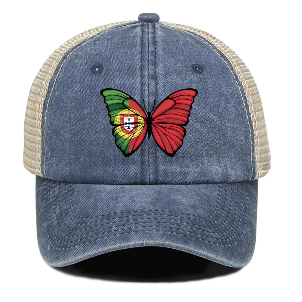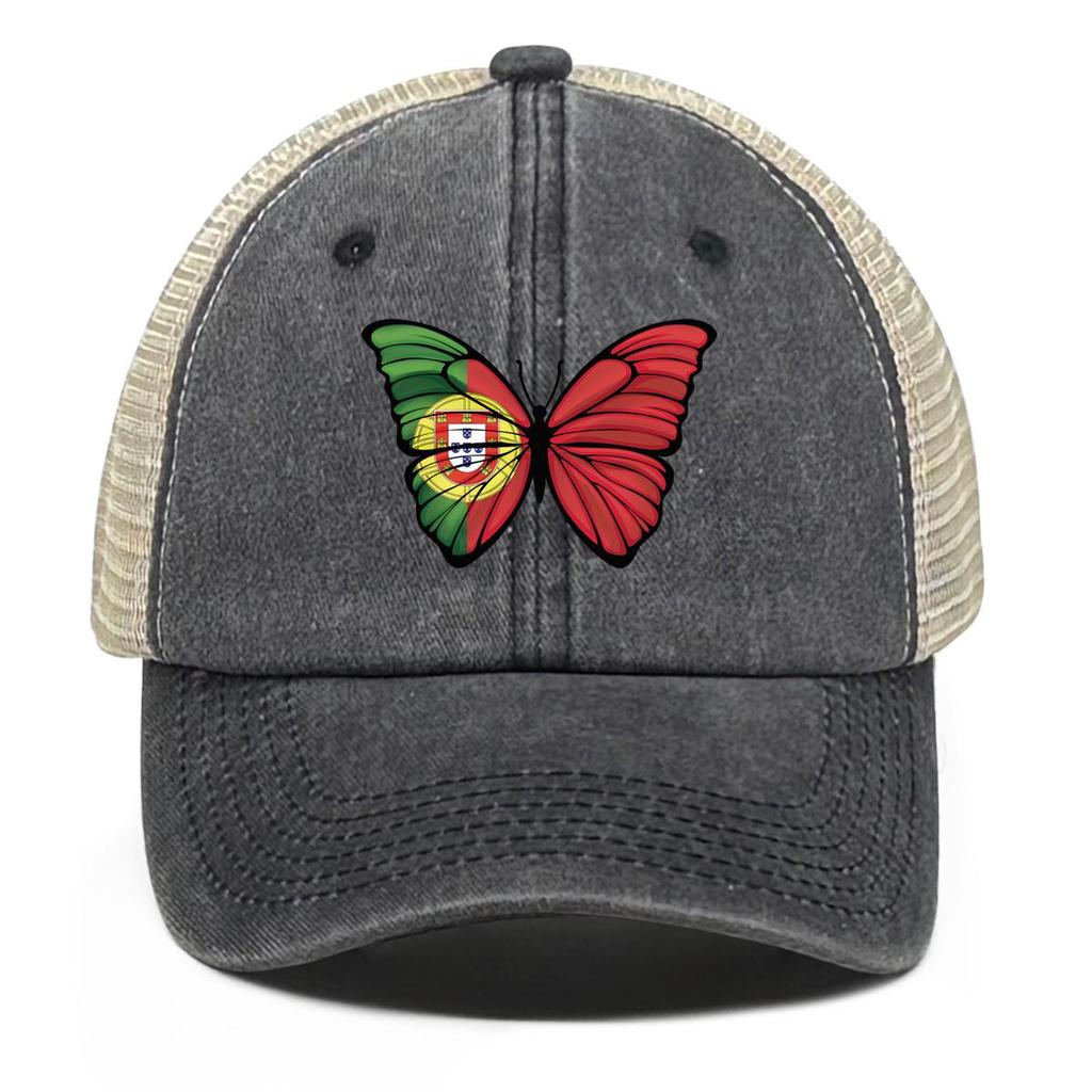 Butterfly Flag of Portugal Print Snapback Trucker Hat,Sunshade Non-Stretch Fabric Adjustable Baseball Hat