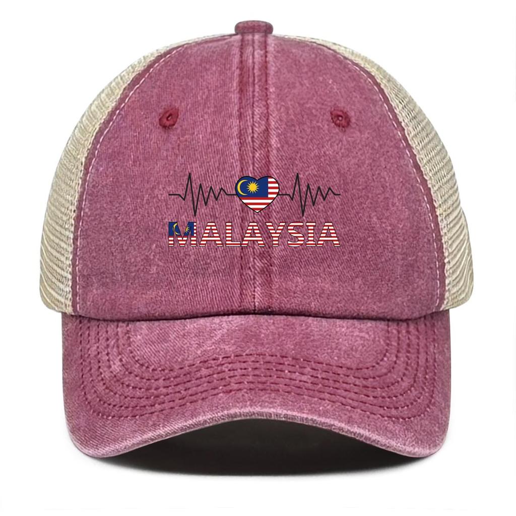 Heart Wave Malaysia Flag Print Snapback Baseball Hat, Patriotic Flat Cap Raw Brim Lightweight Distressed Adjustable Strap Snapback Baseball Cap