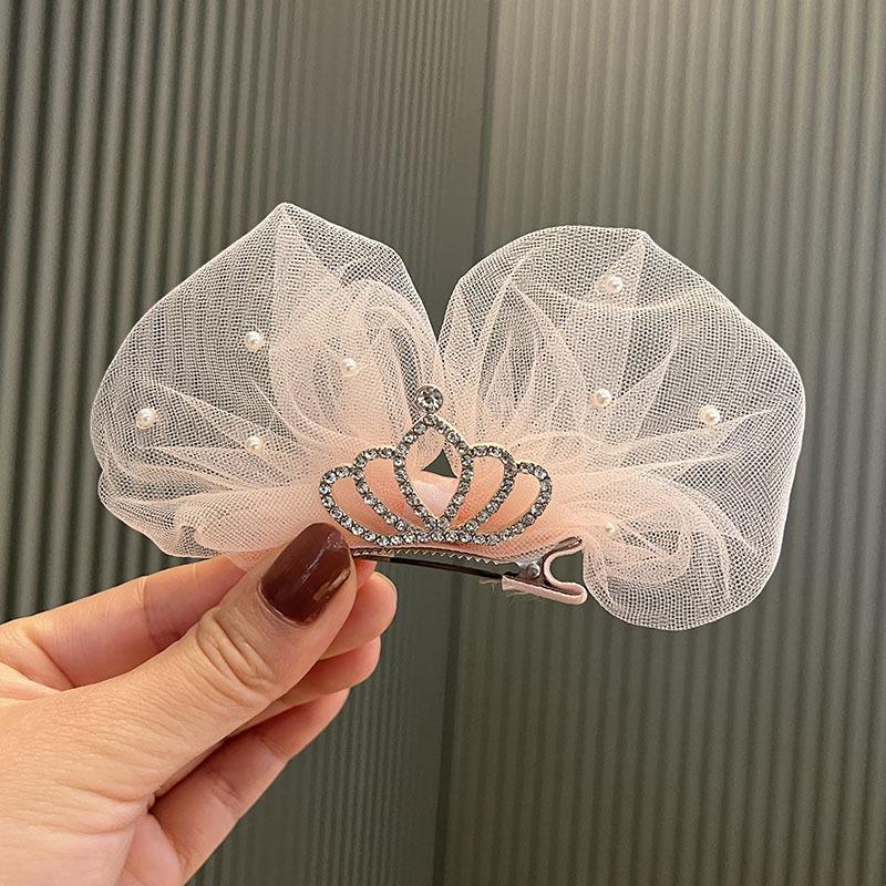 Летний бант-корона заколка для волос для детей – Милая принцесса сетка жемчуг заколка