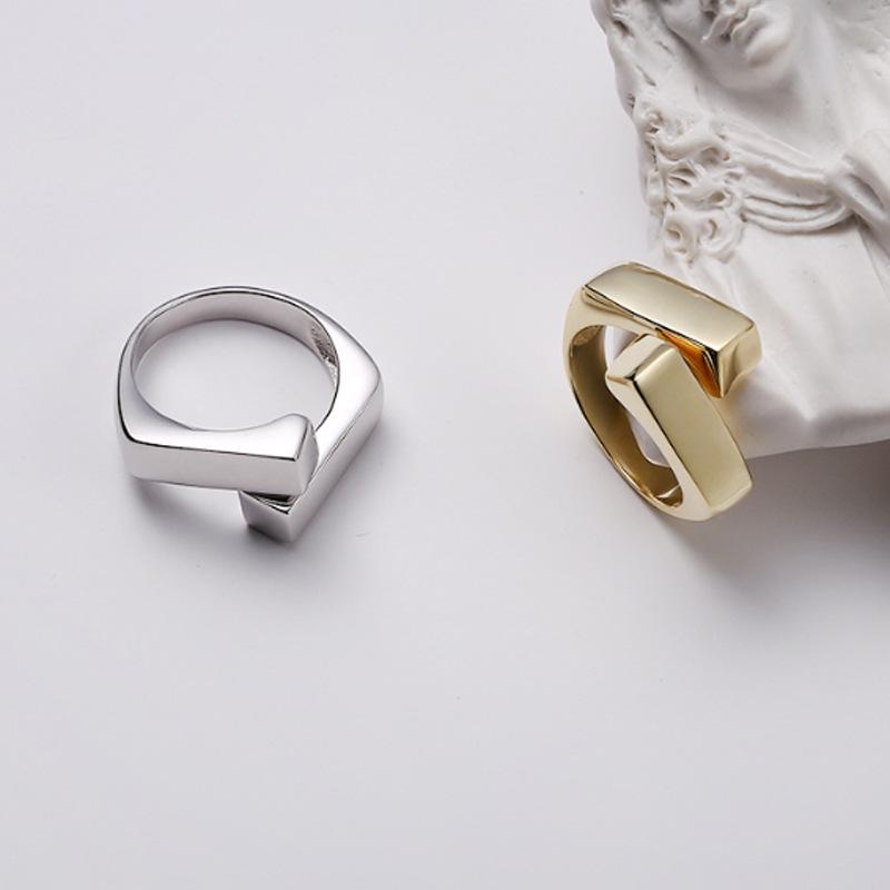 Геометрический дизайн Высококачественное позолоченное кольцо из стерлингового серебра S925 для женщин