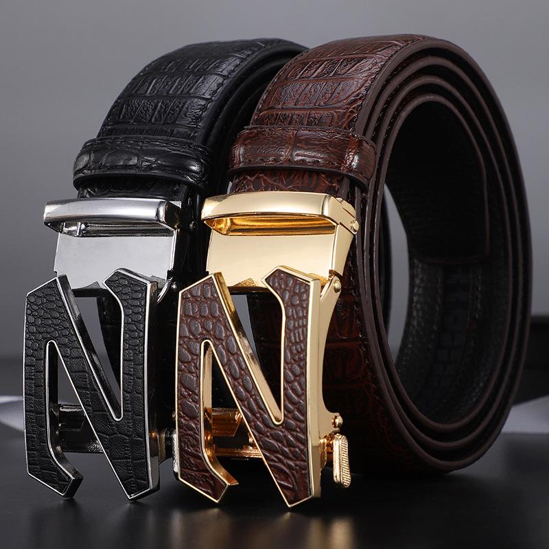Мужской кожаный ремень с узором крокодила и автоматической пряжкой - Модный, универсальный и повседневный аксессуар для талии для брюк — купить товар онлайн с бесплатной доставкой по всему миру!
