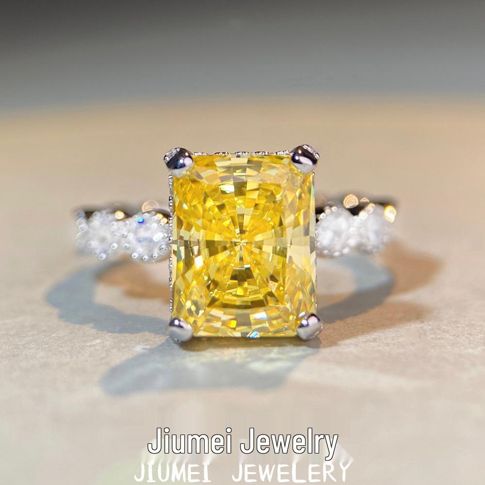 Кольцо «Принцесса» из стерлингового серебра 925 пробы с желтым бриллиантом с четырьмя крапанами - Европейский и американский стиль, не тускнеет