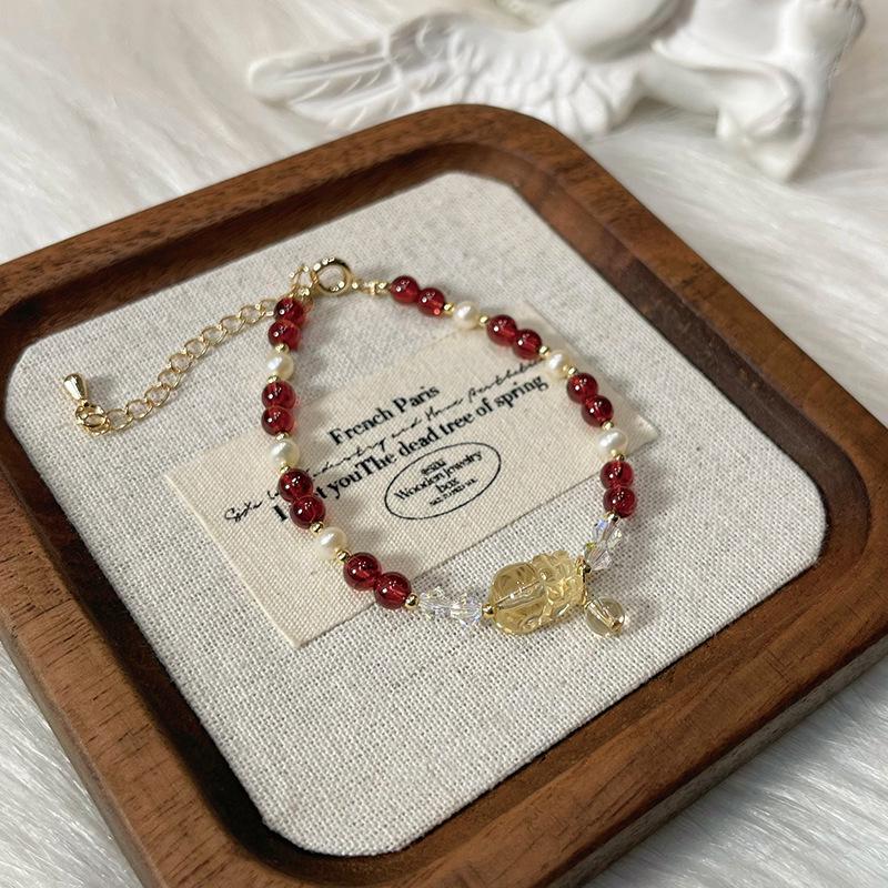 Женский хрустальный браслет Qiaoen Пи Сю с бургундским гранатом, цитрином и пресноводным жемчугом
