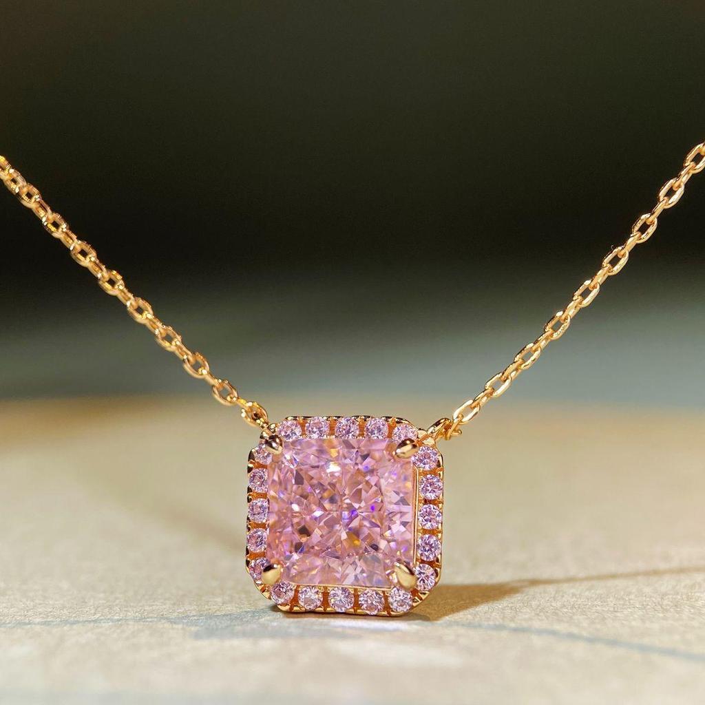 Ожерелье из стерлингового серебра S925 с покрытием из 18-каратного золота и розовым бриллиантом «Ледяной цветок» для женщин