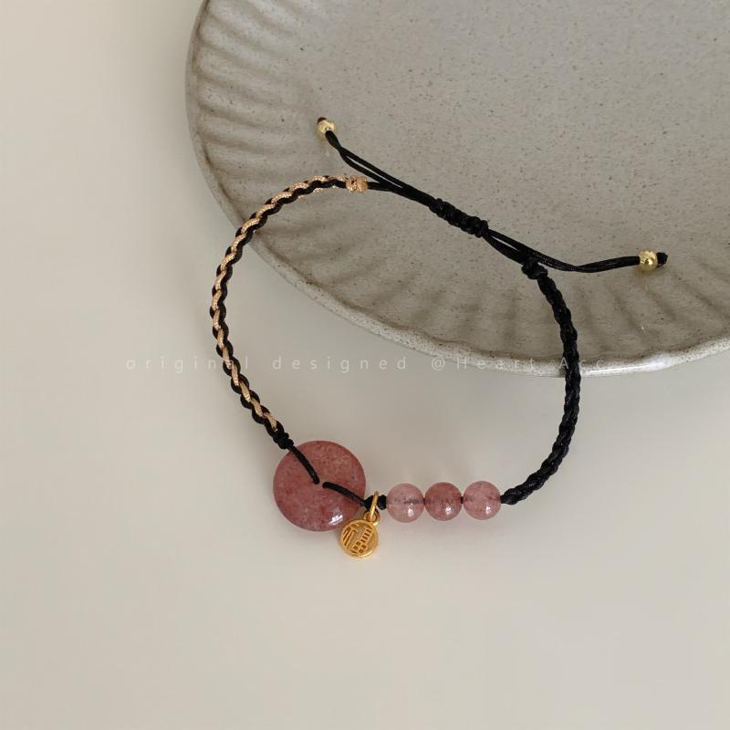 Плетеный браслет из клубничного кристалла «Любовь и мир» - Женский нишевый дизайн, Стиль звездной пары