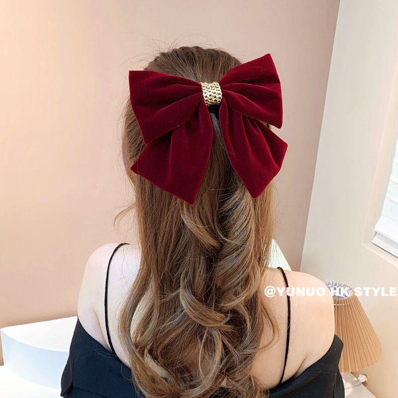 Большой красный бархатный бант заколка для волос для свадебного или вечернего наряда - Головной убор в стиле корейского инфлюенсера