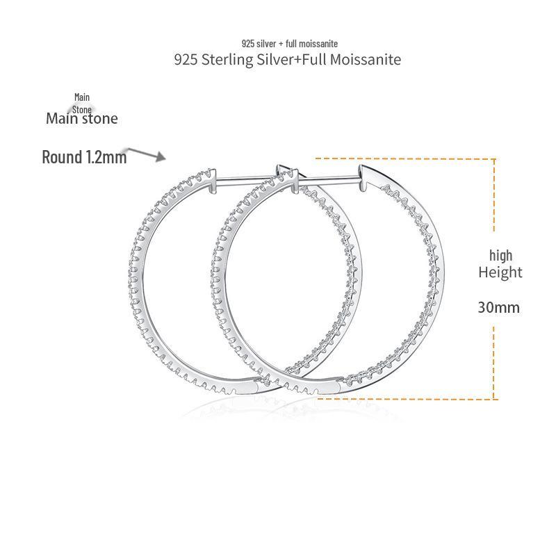 2025 Европейские и американские серьги-пусеты из стерлингового серебра 925 пробы с муассанитами в форме круга - Женские серьги высокого класса для более стройного лица