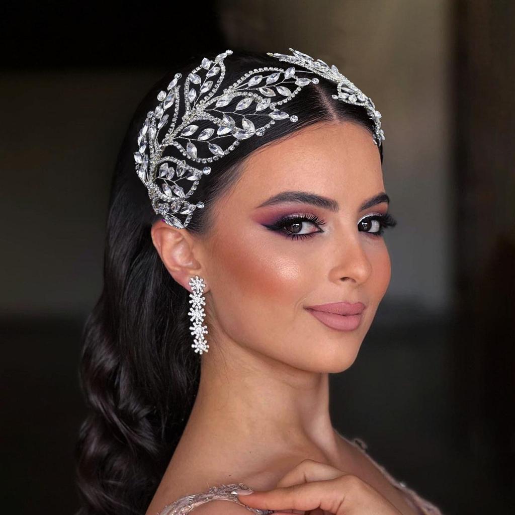 Свадебный ободок для волос с листьями из стразов - Плетёный вручную аксессуар для волос для свадеб и мероприятий, DZ017 — купить товар онлайн с бесплатной доставкой по всему миру!