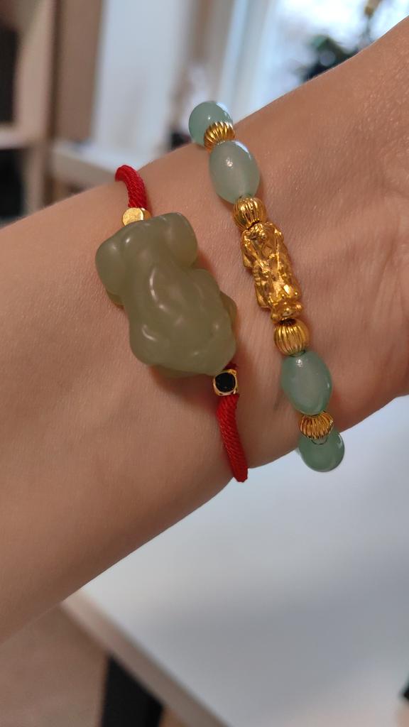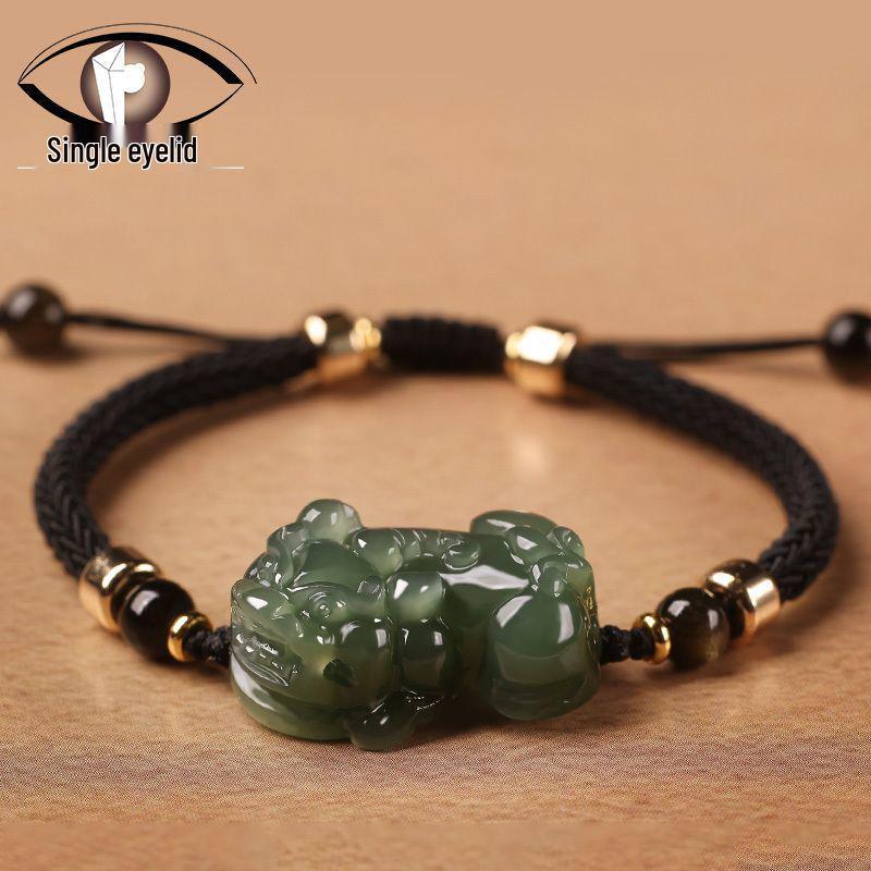 Браслет-оберег Пиксю из нефрита Хэтянь, привлекающий богатство, для пар - Нефрит и бисерная ручная веревка, украшения для женщин и мужчин.
