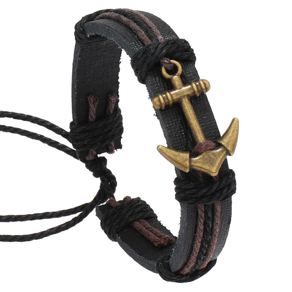 Мужской кожаный браслет-якорь - Европейский и американский стиль, дизайн из сплава — купить товар онлайн с бесплатной доставкой по всему миру!