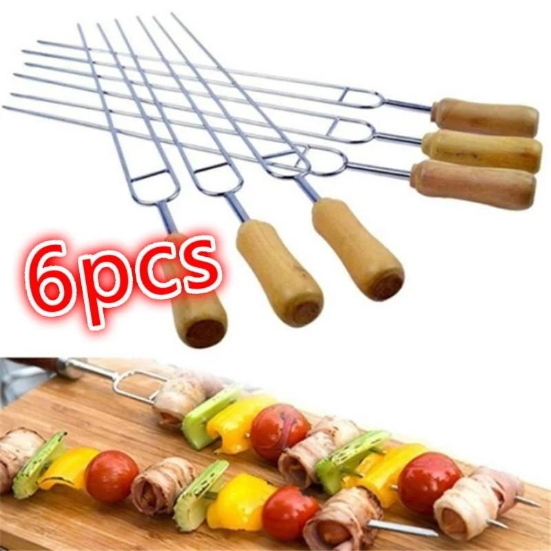 6 шт./набор Инструменты для барбекю Нержавеющая сталь Вилка для мяса-гриль U-образной формы Приготовление на открытом воздухе Держатель для кукурузы Инструмент для барбекю
