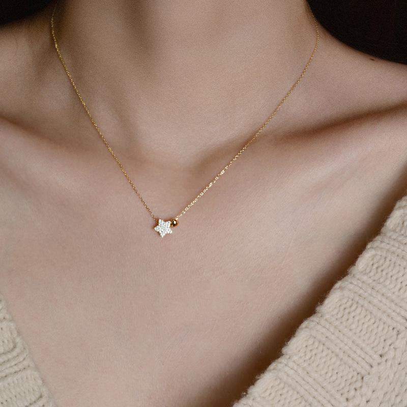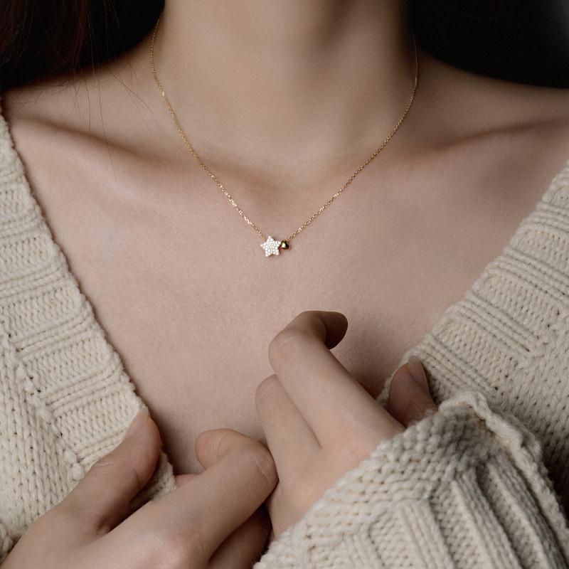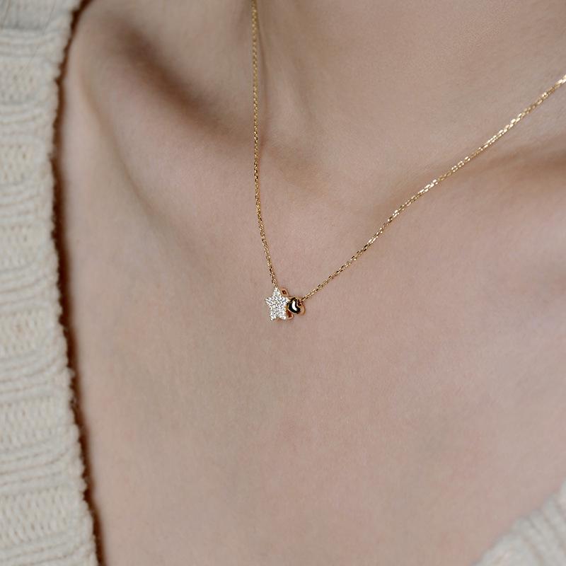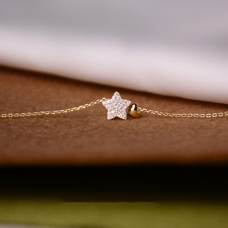 Niche Design S925 Sterling Silver Gold-Plated Diamond Star Pendant Necklace