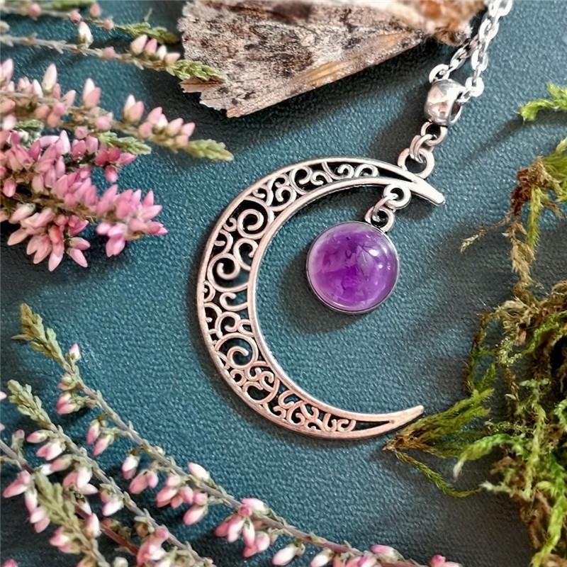 Готическое панк-ожерелье с фиолетовым хрустальным полумесяцем - Креативный кулон-заявление