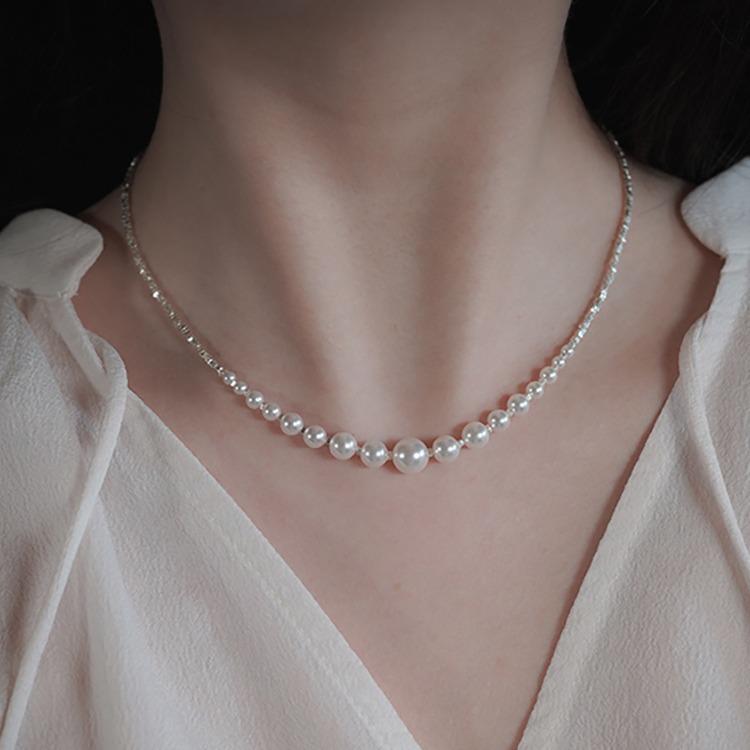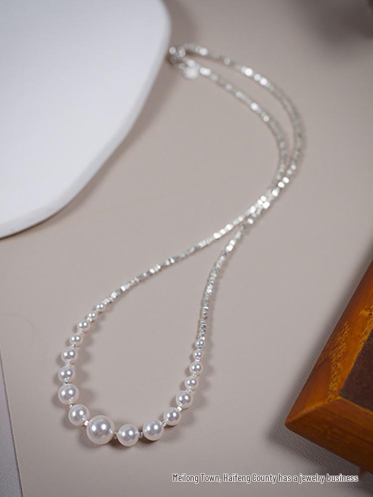 Ожерелье из стерлингового серебра 925 пробы с крупным жемчугом и улыбкой для женщин - Роскошная цепочка для ключицы