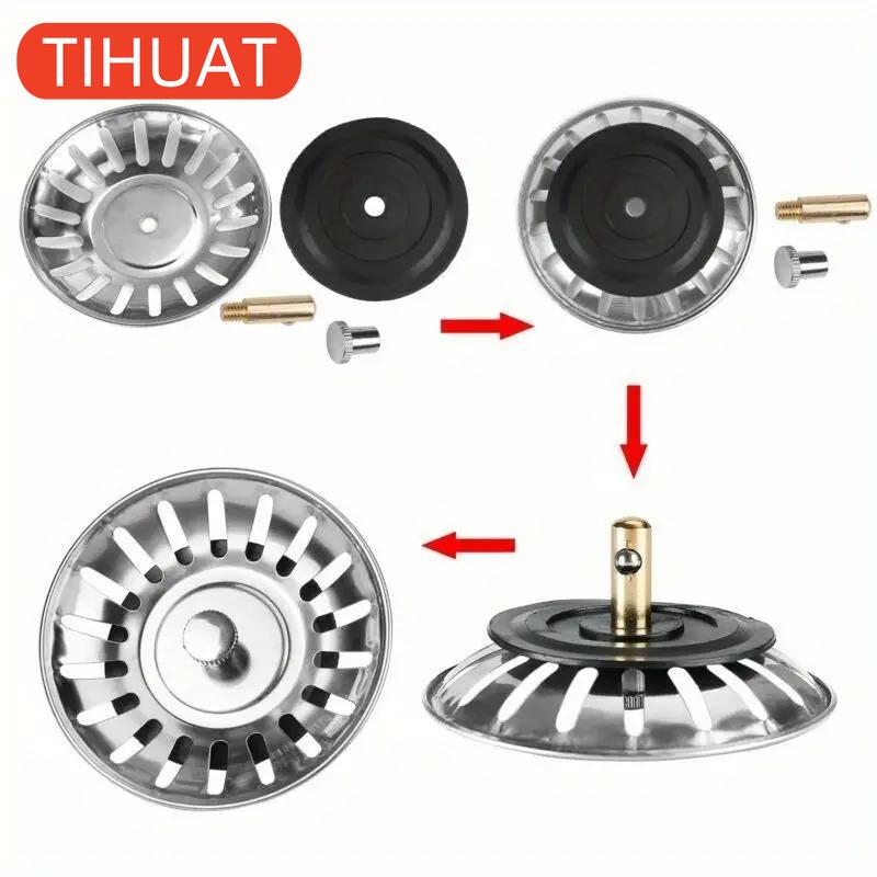 Сетчатый фильтр и пробка для кухонной раковины из нержавеющей стали - Полированная отделка, Уловитель волос для ванной и сливов в полу