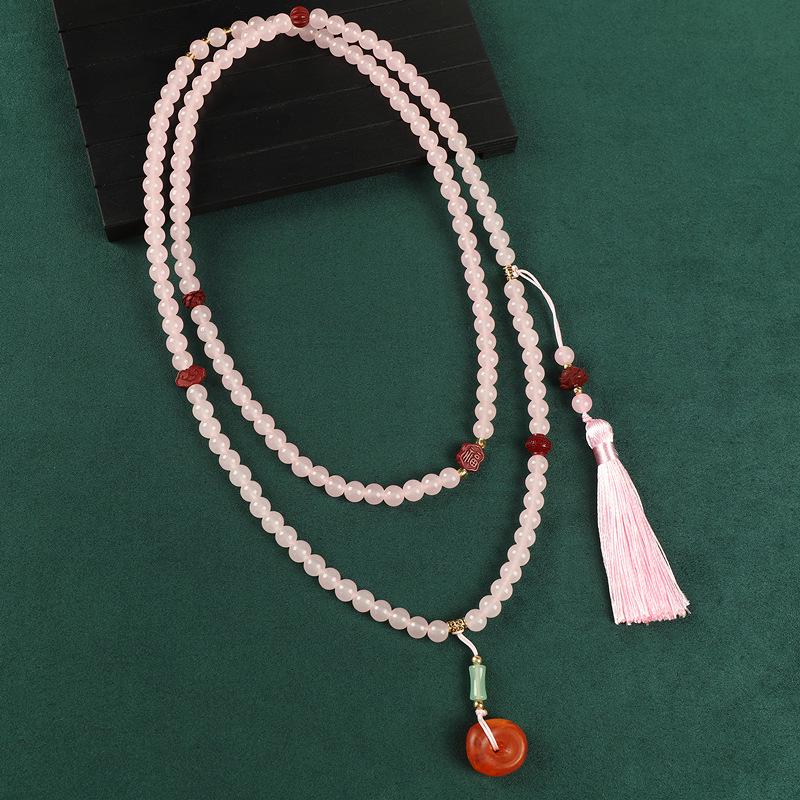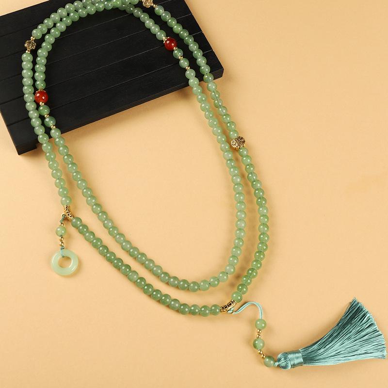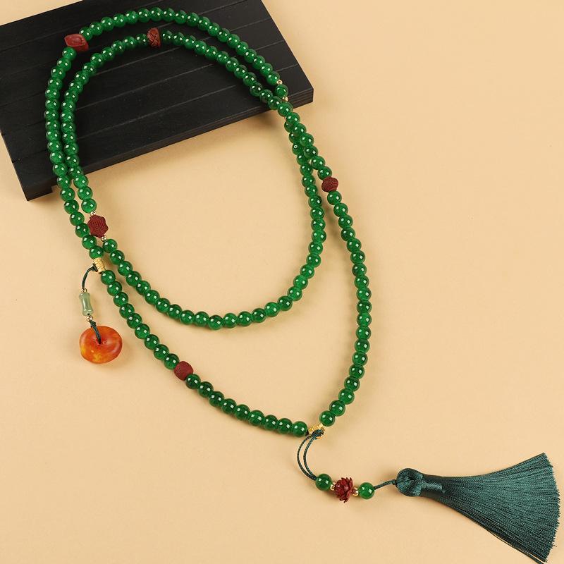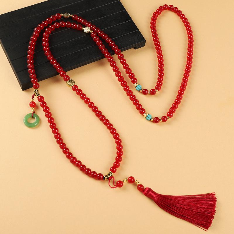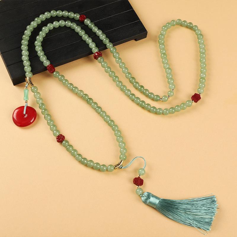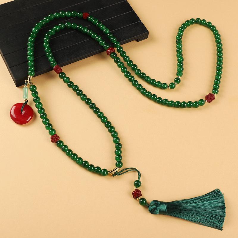 Элегантное ожерелье-кисть из 108 бусин: Винтажная китайская цепочка-свитер через плечо для женщин
