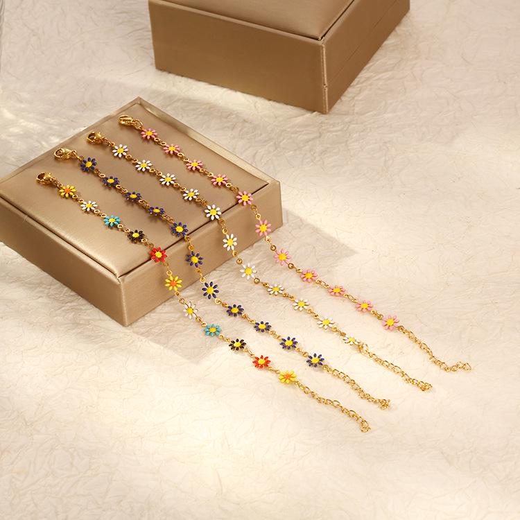 2024 Титановая сталь 18К Золото Набор ожерелье и браслет 'Ромашка' - Белая/Разноцветная цепочка