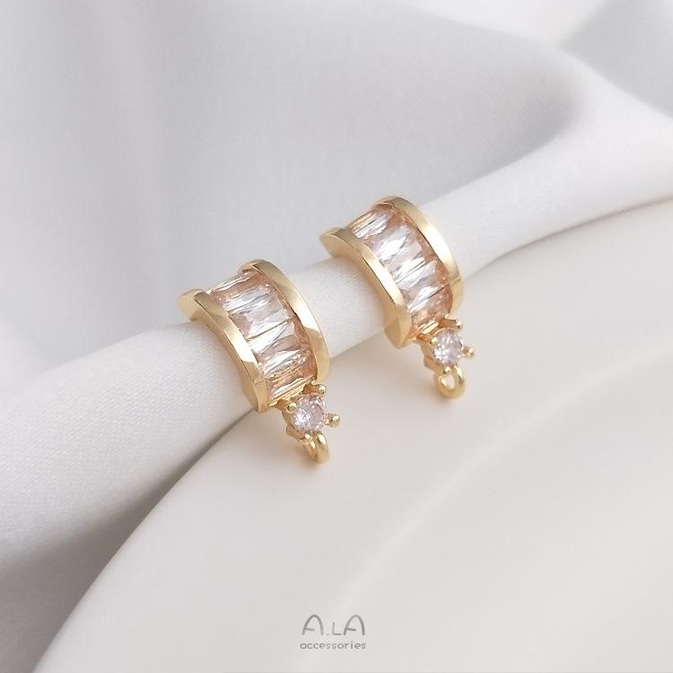 Серьги-пусеты C-образной формы из золота 14 карат с цирконами, с открытым соединительным кольцом и серебряными штифтами 925 пробы