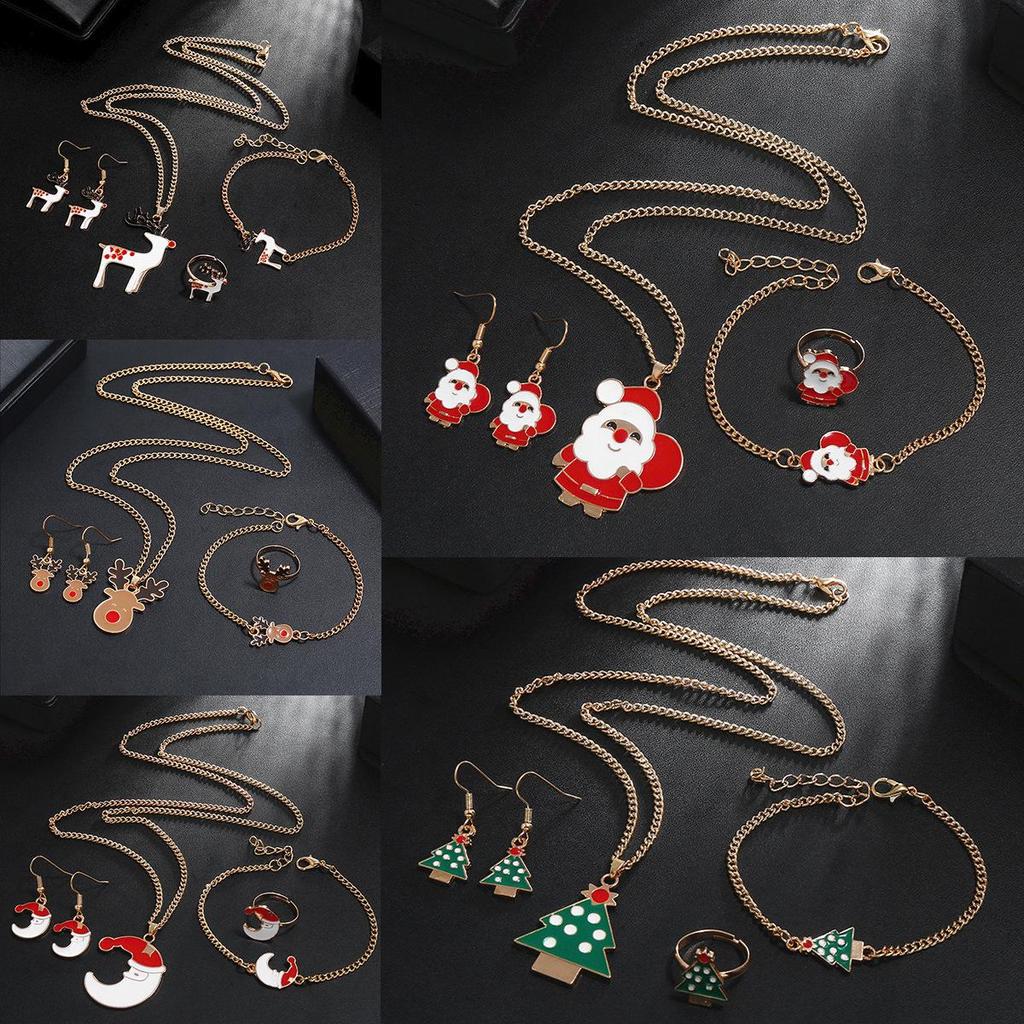 Рождественский милый набор: ожерелье, кольцо, серьги и браслет с Сантой - Европейский и американский стиль