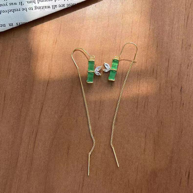 Изумрудный Бамбук Элегантные Зеленые Серьги - Свежие, Изысканные, Модные Украшения с Серебряной Иглой 2023 — купить товар онлайн с бесплатной доставкой по всему миру!