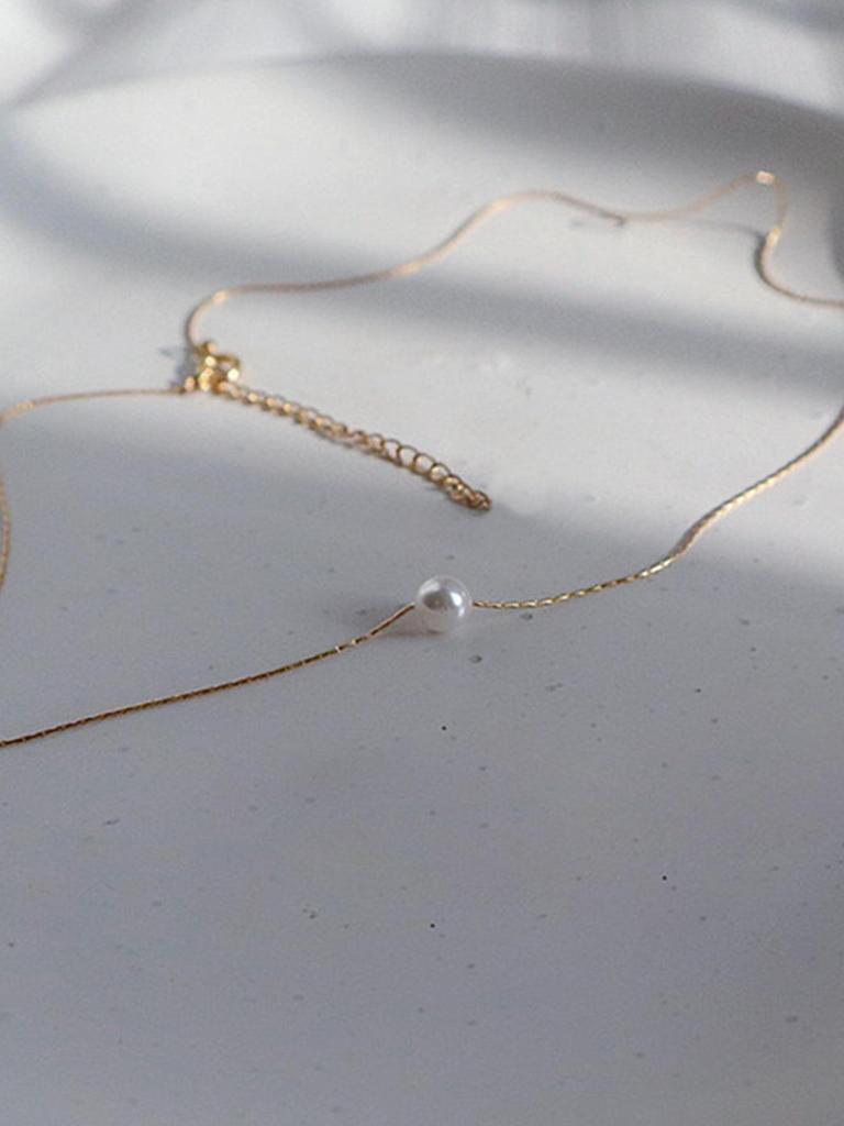 Ожерелье на ключицу из титановой стали с покрытием из 18-каратного золота и пресноводным жемчугом для женщин