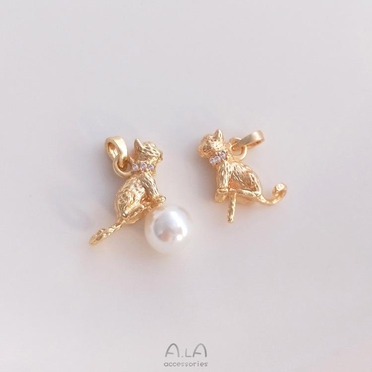 Подвеска-кошка из золота 14 карат с инкрустацией циркониями для изготовления украшений своими руками