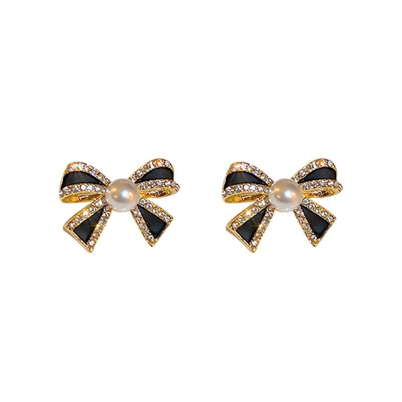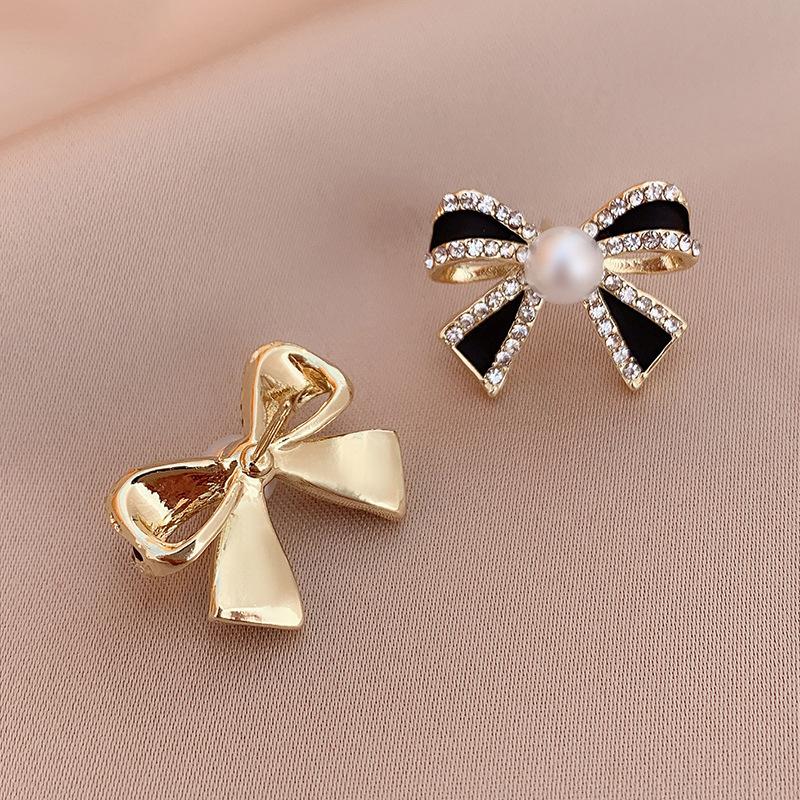 Серьги-пусеты «Серебряная игла» в стиле ретро со стразами, жемчугом и бантом - Элегантно простые, маленькие, с изысканным чувством для женщин